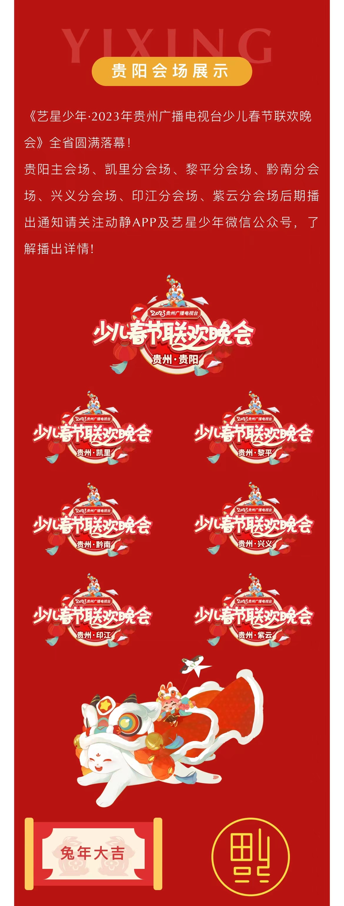 《艺星少年·2023年贵州广播电视台少儿春节联欢晚会》贵阳播出通知!