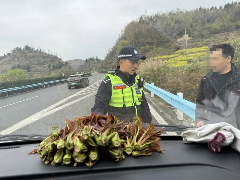 民警耐心向其讲解了高速路上违法停车的严重危害性,李某才意识到了事情的严重性,知道这样做是不对的,并对此后悔不已。驾驶员晏某某说道这个香椿摘不得,这把香椿“有点贵”。
