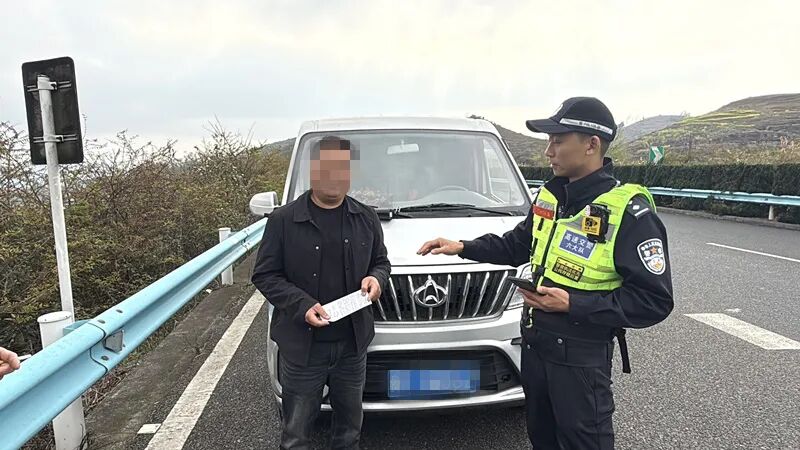 近日,毕节市公安局交通管理支队高速六大队执勤民警巡逻至仁望高速黔西方向165公里加500处时,发现一辆灰色小型普通客车停在紧急停靠带内,既没有打开双闪警示灯,也未在车后摆放警示标志。