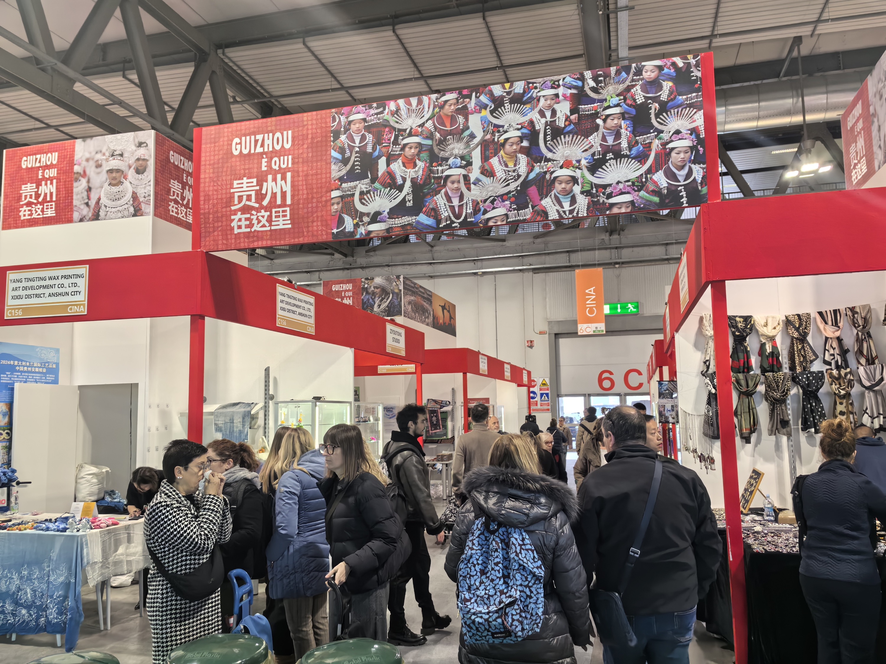 11 月 29 日至 12 月 8日,由贵州省商务厅组织的20家民族手工艺品优强企业受邀赴意大利,参加2024年意大利米兰国际手工艺品销售展,并在当地举办相关商务文化交流活动。