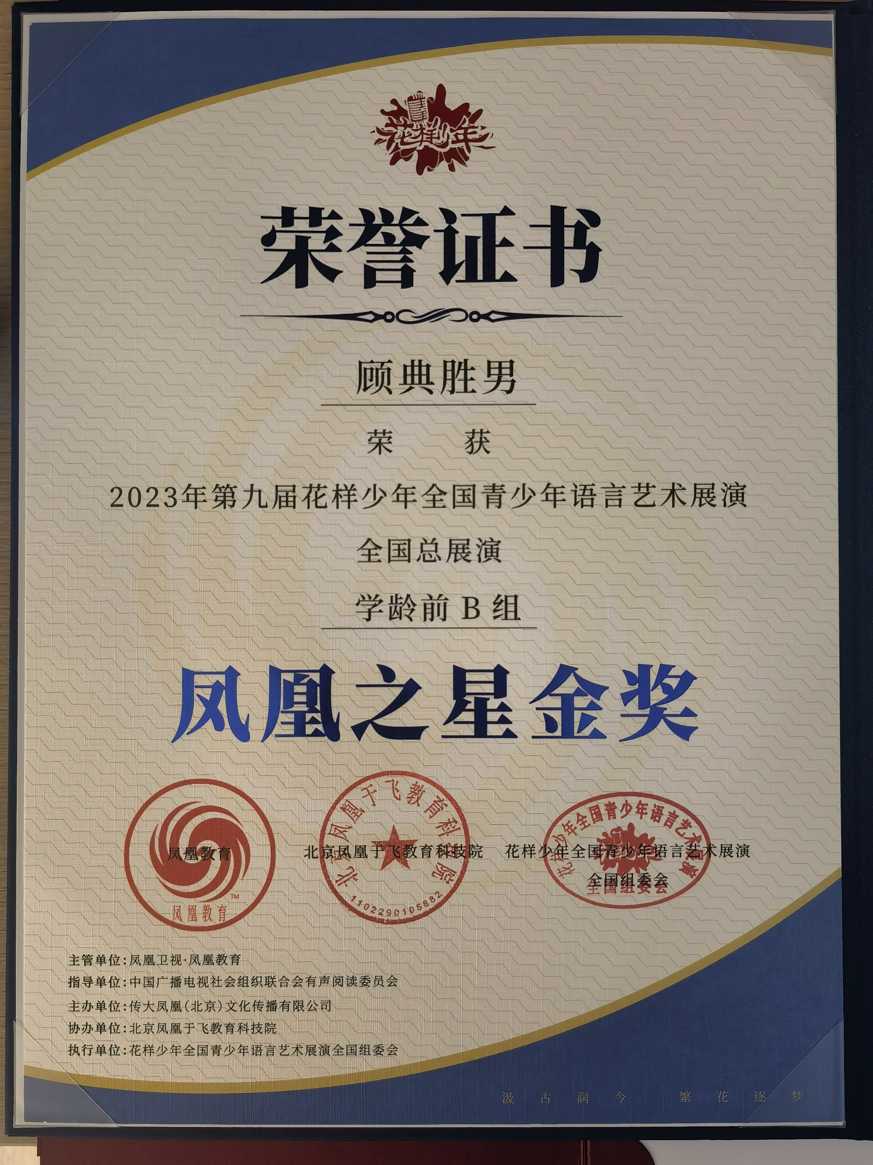 2023年第九届花样少年全国青少年语言艺术展演全国总展演凤凰之星金奖;