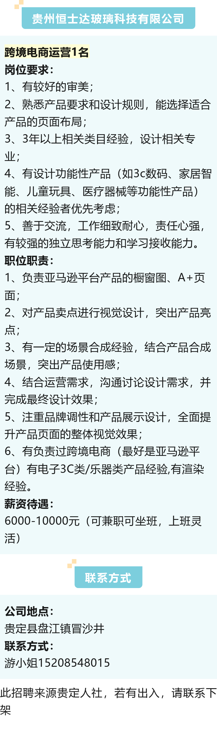 招聘跨境电商运营!月薪6000-10000元!可兼职!