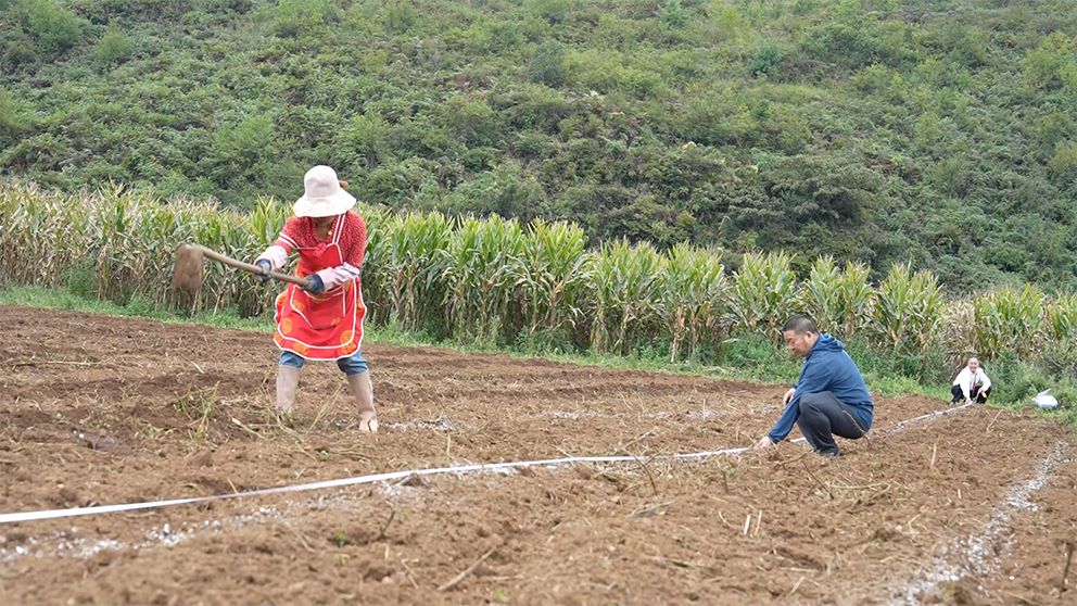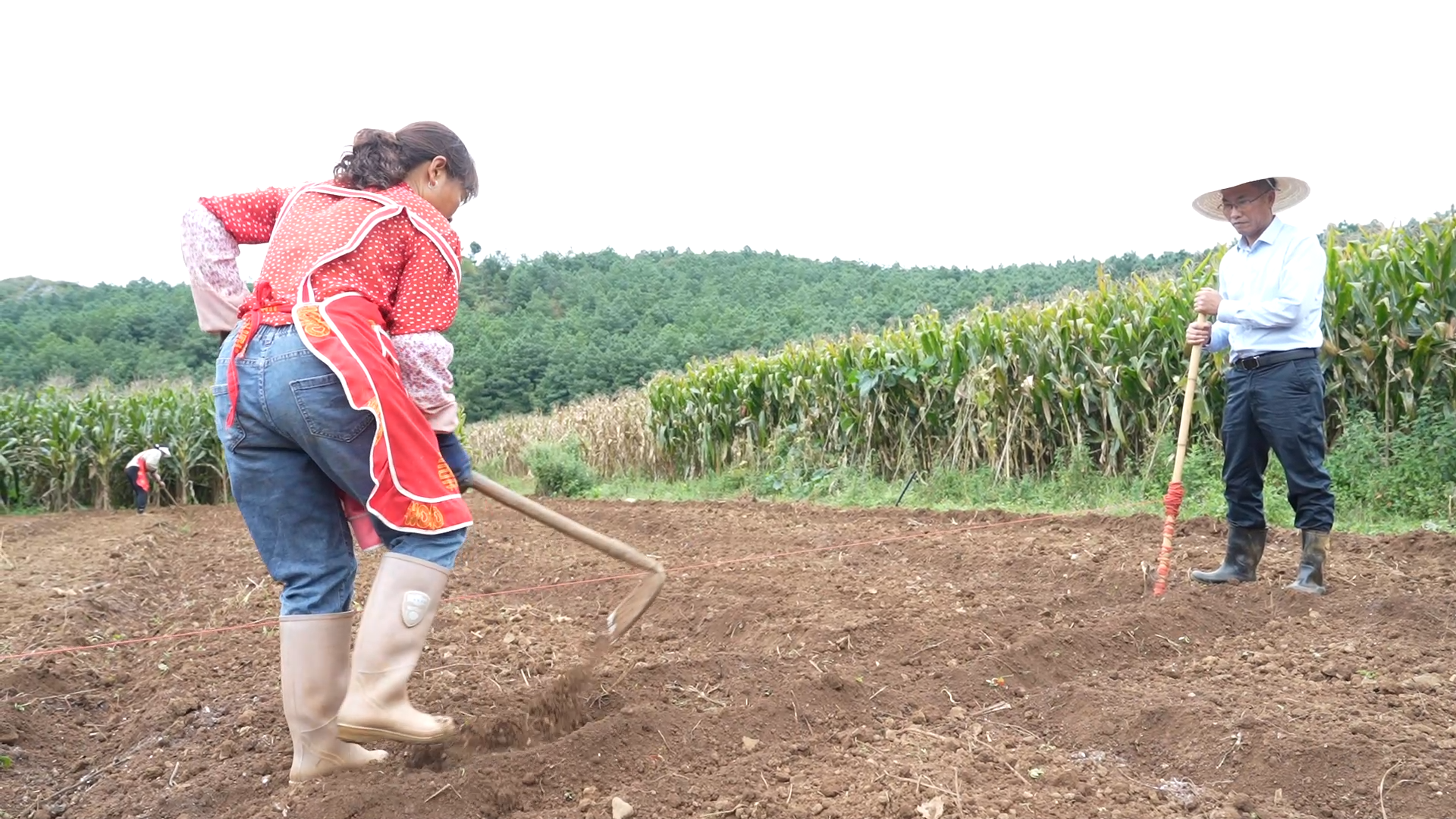 在盘州市丹霞镇铁厂村油菜育苗基地里,农技人员正抓住有利天气指导工人翻土、除草、开箱、撒肥、播种,进行黔油787、黔油168、黔油178等33个油菜品种育种试验。