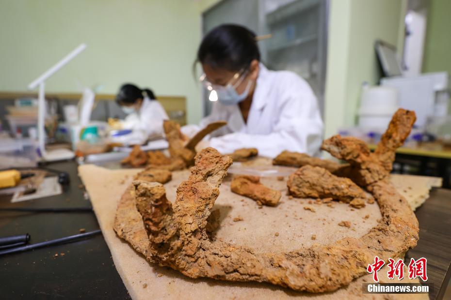 5月24日,大松山墓群发掘现场临时库房内待修复的铁器类文物。