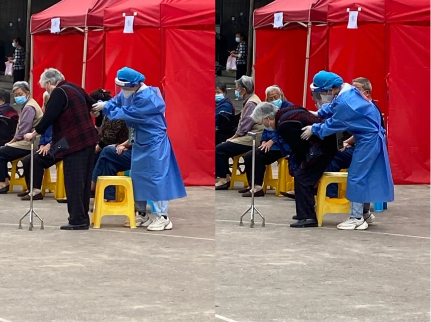 “老人家,您身份证号是多少,我帮您操作。”“奶奶,您先在这边坐一下。”第六检察部干警熊璐在核酸检测点专门负责老年人绿色通道,帮助子女都不在身边的老年人完成核酸检测信息登记。亲切的话语、耐心的动作、一遍一遍的弯腰搀扶,让每一位老人都快速省心地完成了登记。老人们不住地道谢,令她感动之余也干劲更足,这是一场“90后”与“90后”的“双向奔赴”。