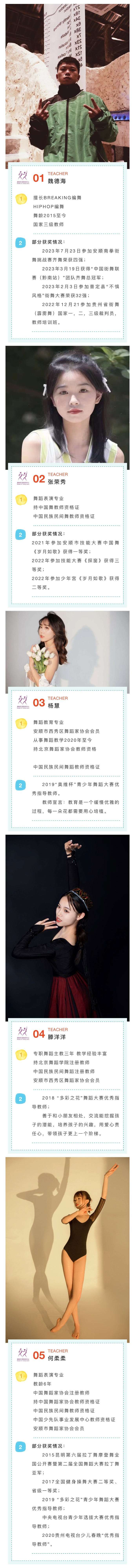 本校拥有一支优质的教师队伍,所有教师均毕业于舞蹈专业,并都持有相关教师资格证书且教龄均为三年及以上。拥有经验丰富、富有激情的教师团队,深知如何激发学生的学习热情、引导学生学习艺术的同时养成良好的行为习惯。