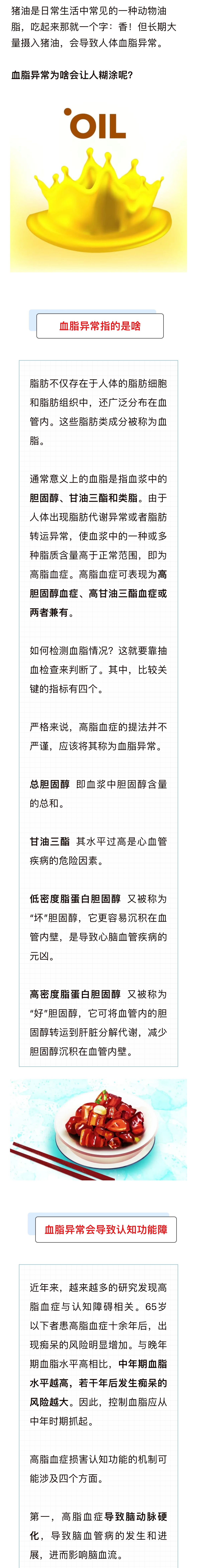 动静健康 | 俗话说“猪油蒙心”,猪油吃多了,真的会糊涂!