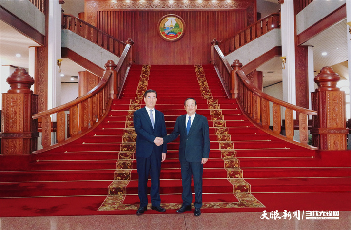 李炳军会见贵州友好省——老挝琅南塔省省委书记兼省长万萨瓦·西潘敦。(图 胡鹏)