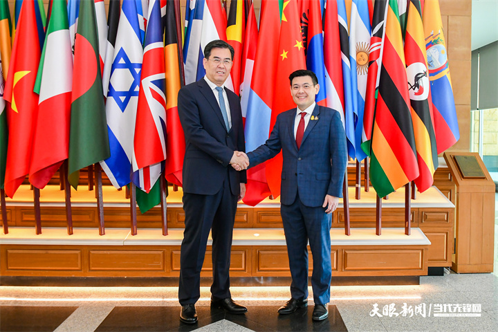 李炳军会见泰国总理府办公室部长扎卡蓬·散玛尼。(图 胡鹏)