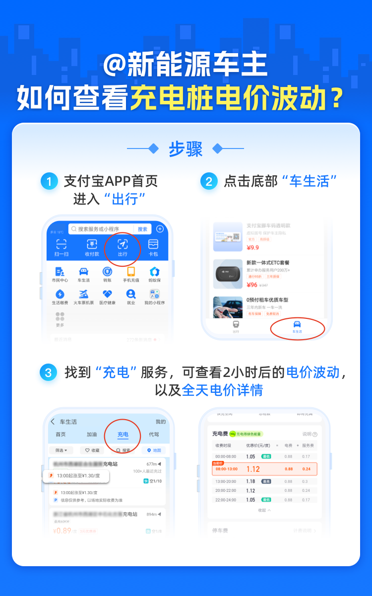 @贵州新能源车主,支付宝出行上线电价提醒,充电更省钱!