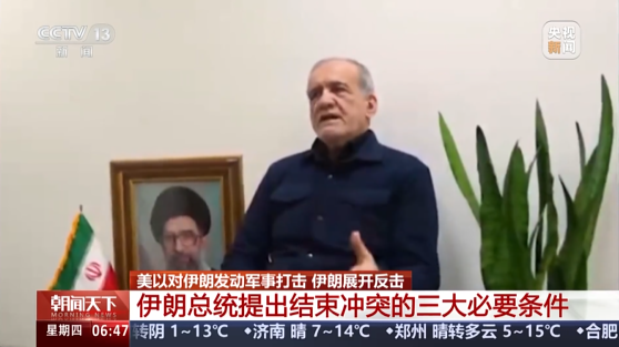 当地时间11日,伊朗总统佩泽希齐扬在社交媒体上发文称,其在与俄罗斯和巴基斯坦领导人通话时,重申了伊朗维护地区和平的承诺,并提出了结束当前冲突的必要条件。