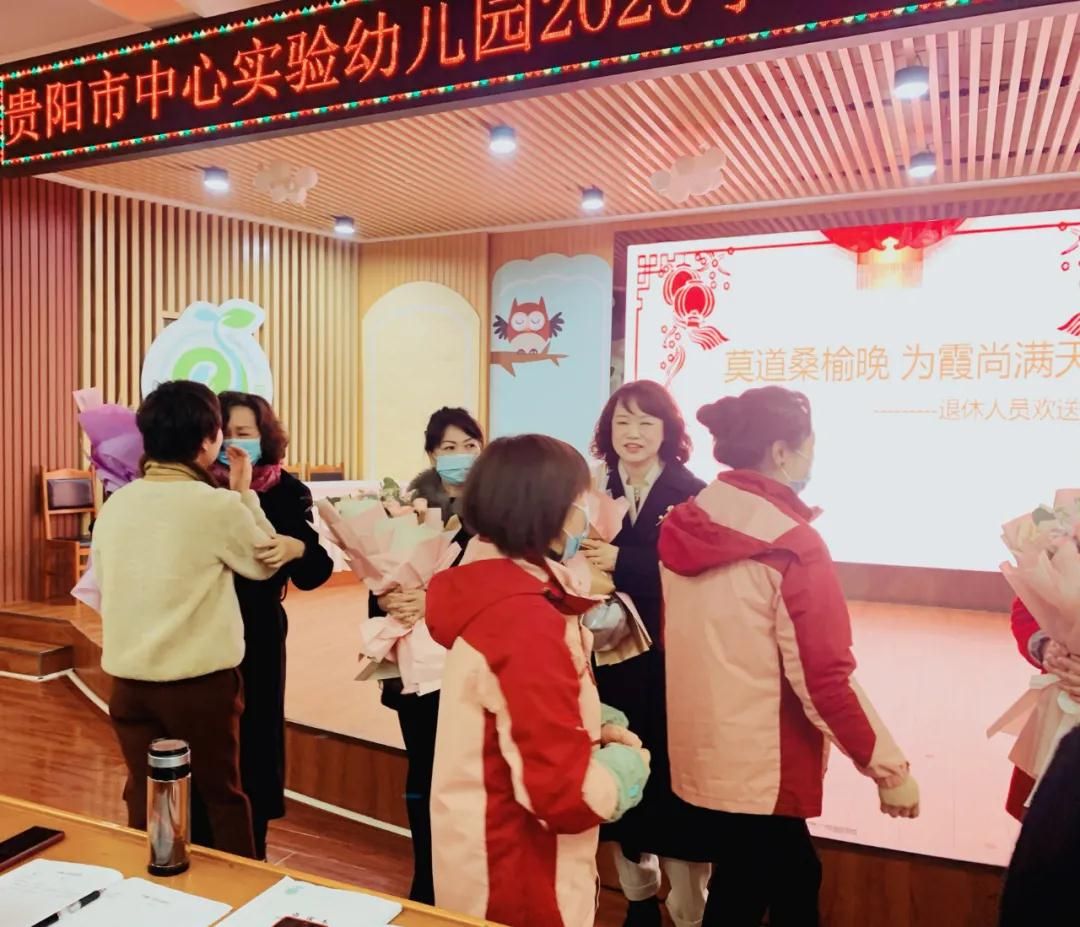 “莫道桑榆晚,为霞尚满天”——退休人员欢送会。在这个温暖的时刻马上退休的教师陈文均、刘明红、杨晓霞以及食堂阿姨陆江峥满载收获和喜悦,从她们的眼神里的依依不舍深深的感受到对这个奉献青春的地方深深的眷恋。最后在温暖的视频回忆中老师们都流下了感动的眼泪,在大家的掌声、拥抱与祝福中相信老师们的退休生活一定能更加多姿多彩!