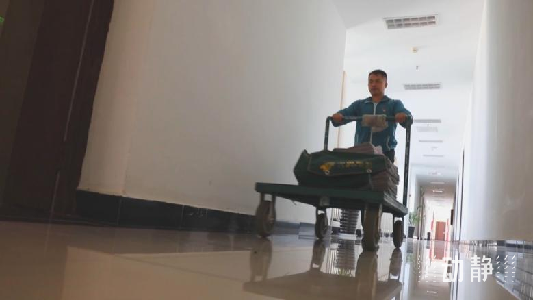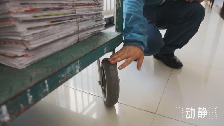 莫富元告诉记者,原来的车轮轴承坏了,会发出“吱嘎吱嘎”的声音,在办公室走廊里推着送报纸会影响别人办公。于是,他跑了不少地方,找到这种防噪音的轮子,推着没有声音,一次可以拉四、五百斤东西。