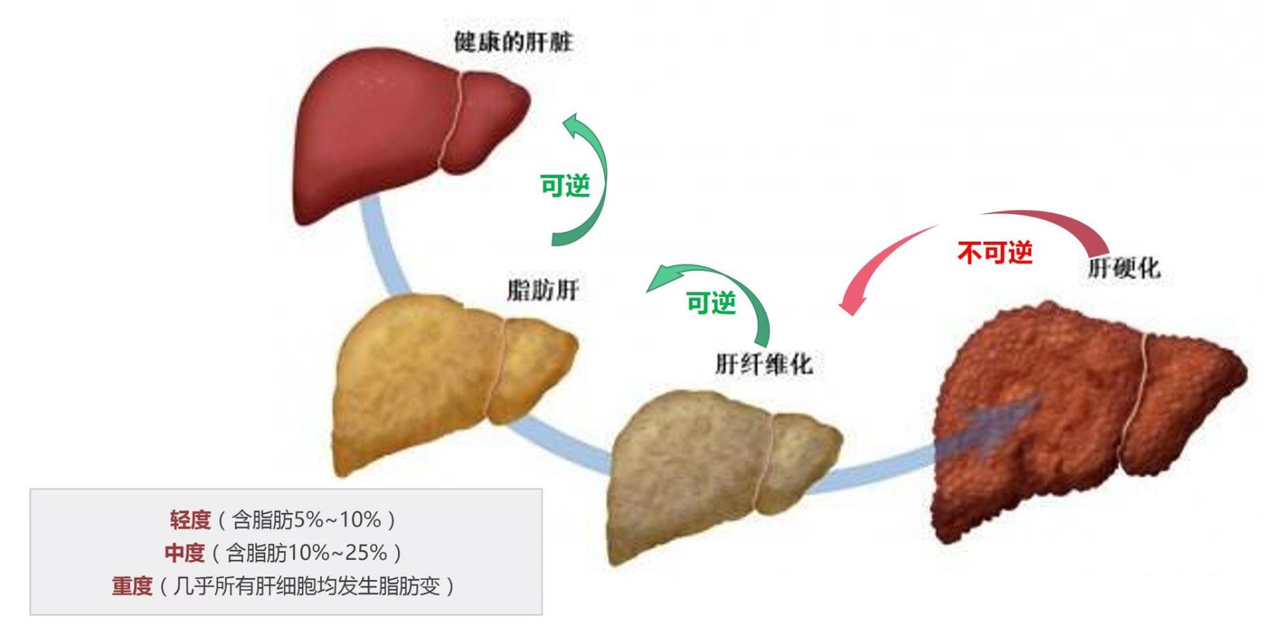 具体而言,当肝内脂类含量超过肝湿重的5%,或显微镜下肝组织切片中超过5%的肝细胞发生脂肪变性时,称为脂肪肝。