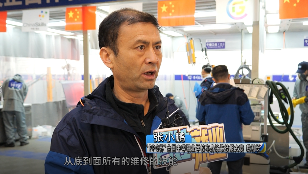 2023年“PPG杯”全国中等职业学校车身涂装技能大赛 裁判长 张小鹏:借着这次比赛,能让职业院校的老师们和学生们有一次交流和表现的机会,而且整个比赛项目是非常接近于这个行业维修时的现状的,比赛结束后,经过评委团的专业评审,会根据参赛人数评选出奖项获得人数,一等奖10%,二等奖20%,三等奖30%。我们这个比赛的获奖选手将来到企业也特别受欢迎,他们能力好的到企业马上就可以上岗。