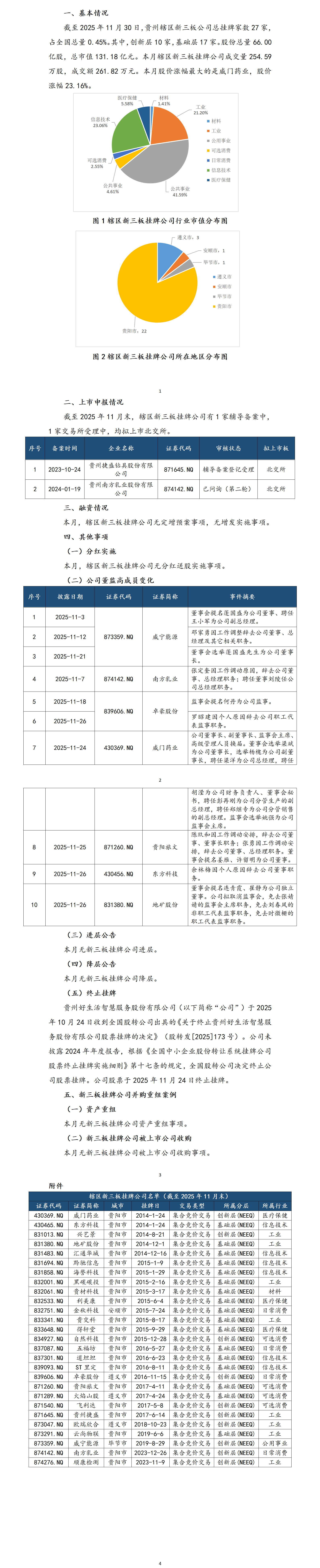 黔证资讯丨贵州资本市场月报:贵州辖区新三板挂牌公司动态(2025年11月)