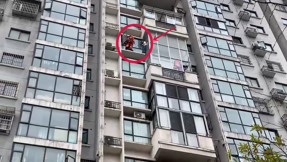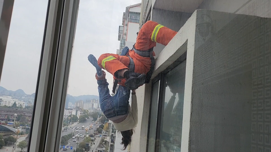 命悬一线!女子欲轻生突然坠楼,黔东南消防员悬空救人
