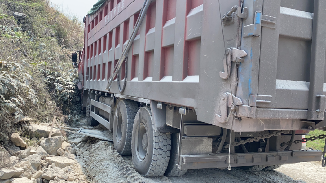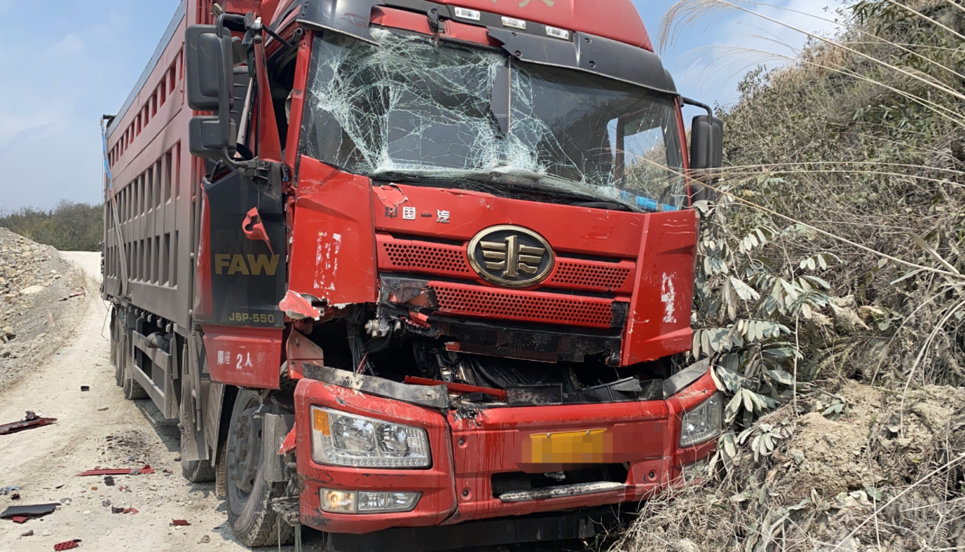 3月20日,在黔西南州贞丰县发生一起交通事故,一辆满载泥巴的货车在下坡时车辆失控导致追尾前车,随后冲向山体,所幸无人员受伤。