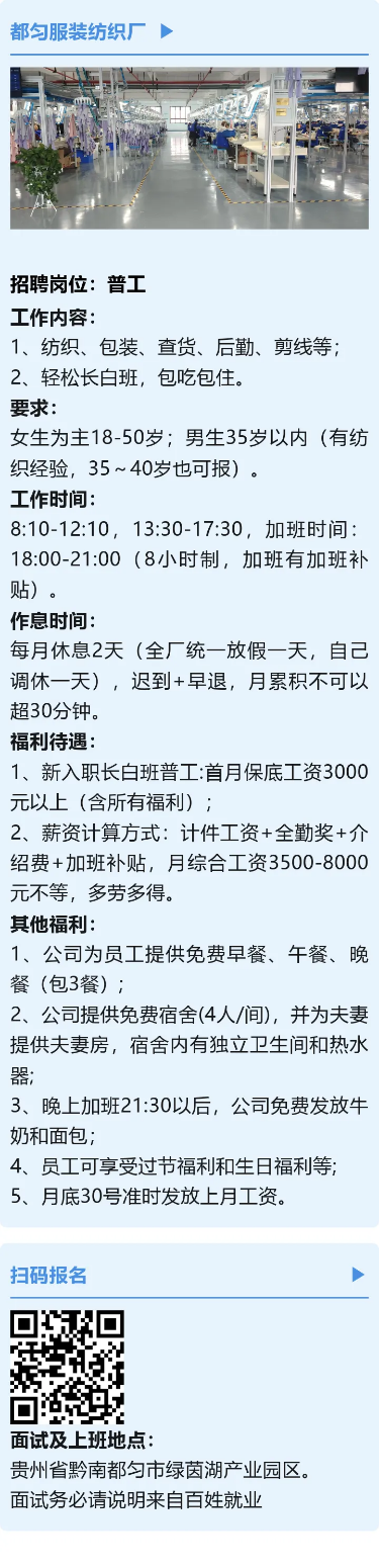 招聘普工!月综合工资可达8000!包吃包住