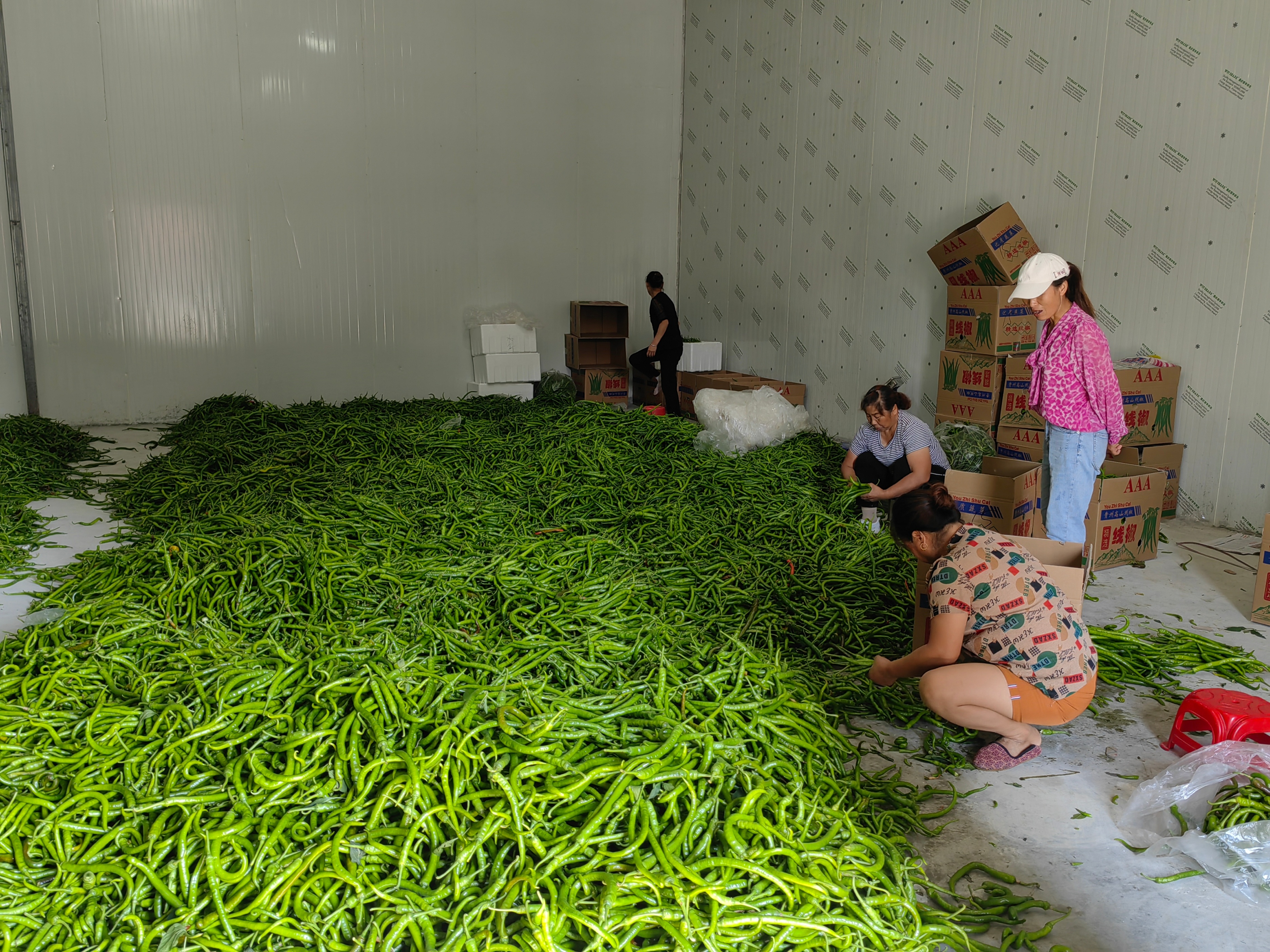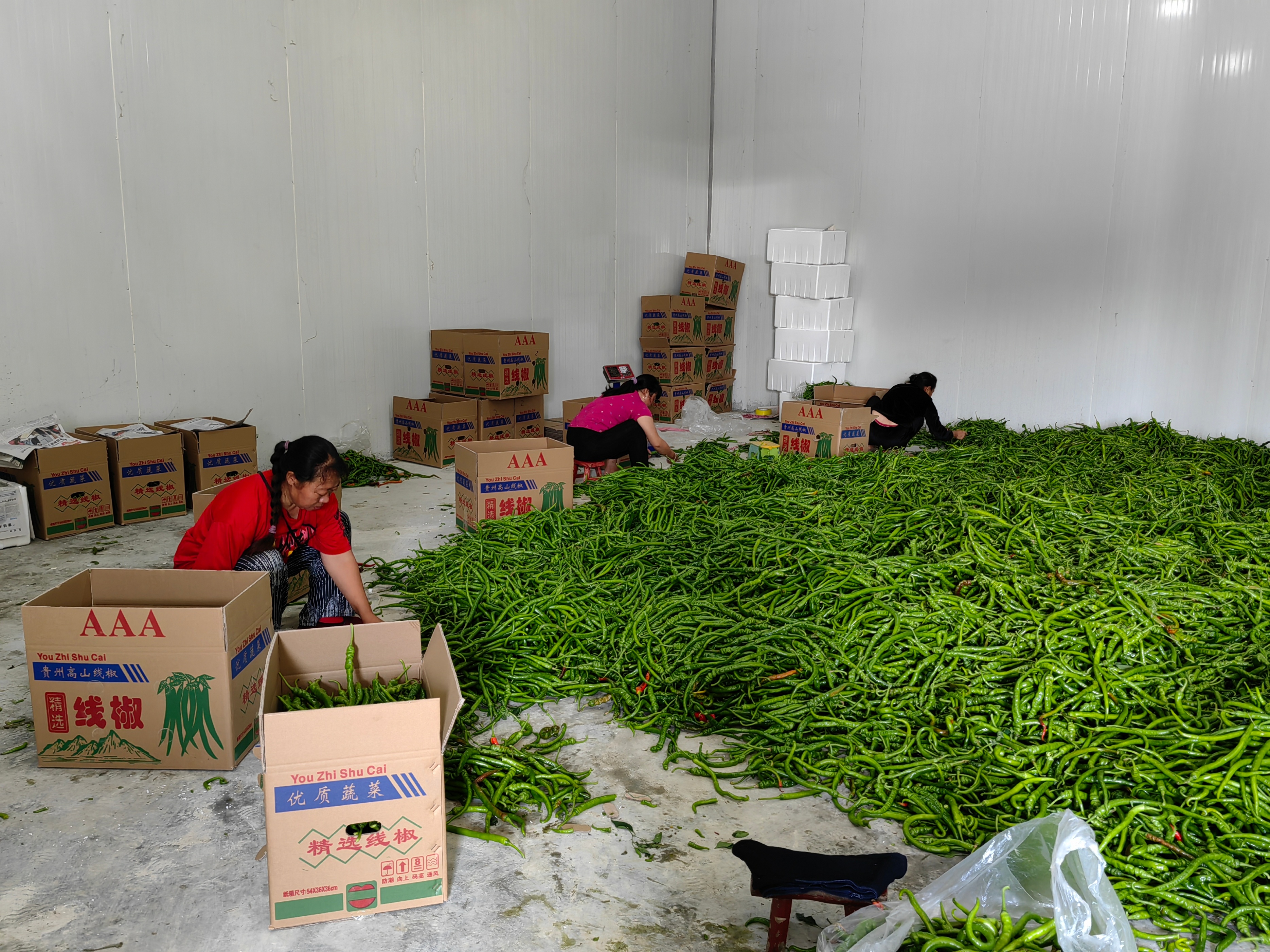 陆坪镇罗坳村辣椒分拣中心冷藏库从立项备案到建设到竣工,从调试到使用,经过紧张建设,于今年正式投入运营,自青椒陆续开采以来,每天都有全市各地的辣椒在这里进行“冷处理”,然后分装打包销往全国各地。