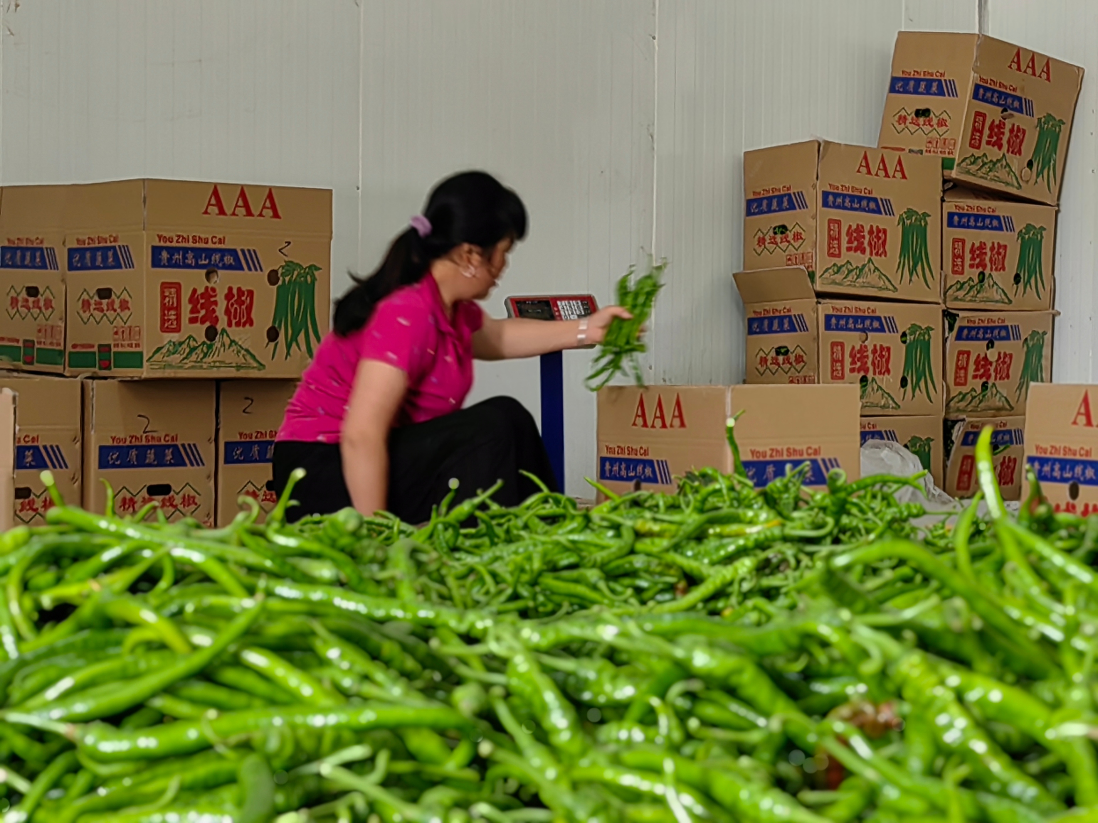 福泉市鑫农缘种养殖有限公司法人 余天才:这个冷库给辣椒带来的最大作用就是储存和分拣,主要还是让我们的产品在里面得到更好的储存,在后期的运输当中,起到更加保鲜和保证产品质量的作用,让最好的品质体现在消费者面前,所以冷库建设对于辣椒产业还是比较有益的。