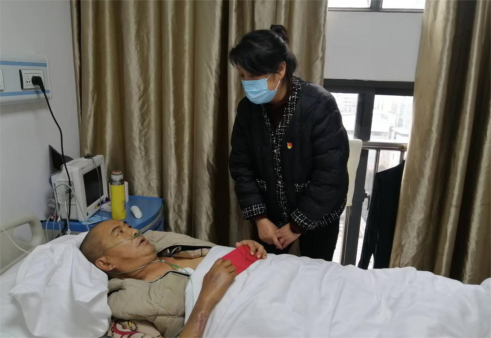 随后,唐蓓带着工作人员来到辖区困难群众易泽佳住院的贵阳市第五人民医院。易泽佳今年61岁,无收入,租房居住,因为患有多种基础病,血压长期达到200以上,属辖区低收入家庭。唐蓓关切地跟他唠家常,鼓励他战胜病魔,要对生活有信心,社区一定会长期的对困难群体进行帮扶,让大家渡过难关,同时也送上了新年的慰问品和慰问金,帮助他度过一个祥和温馨的春节。