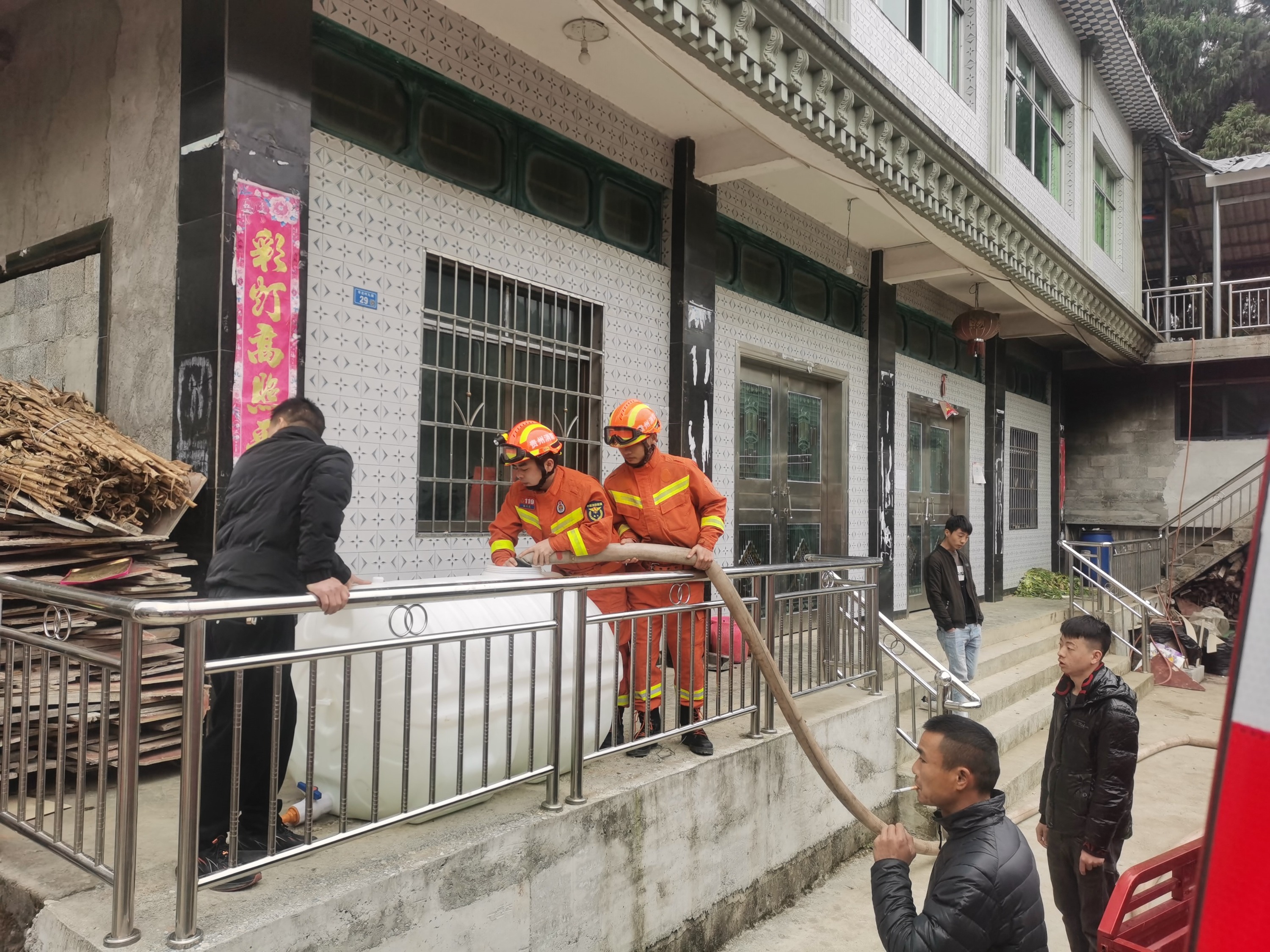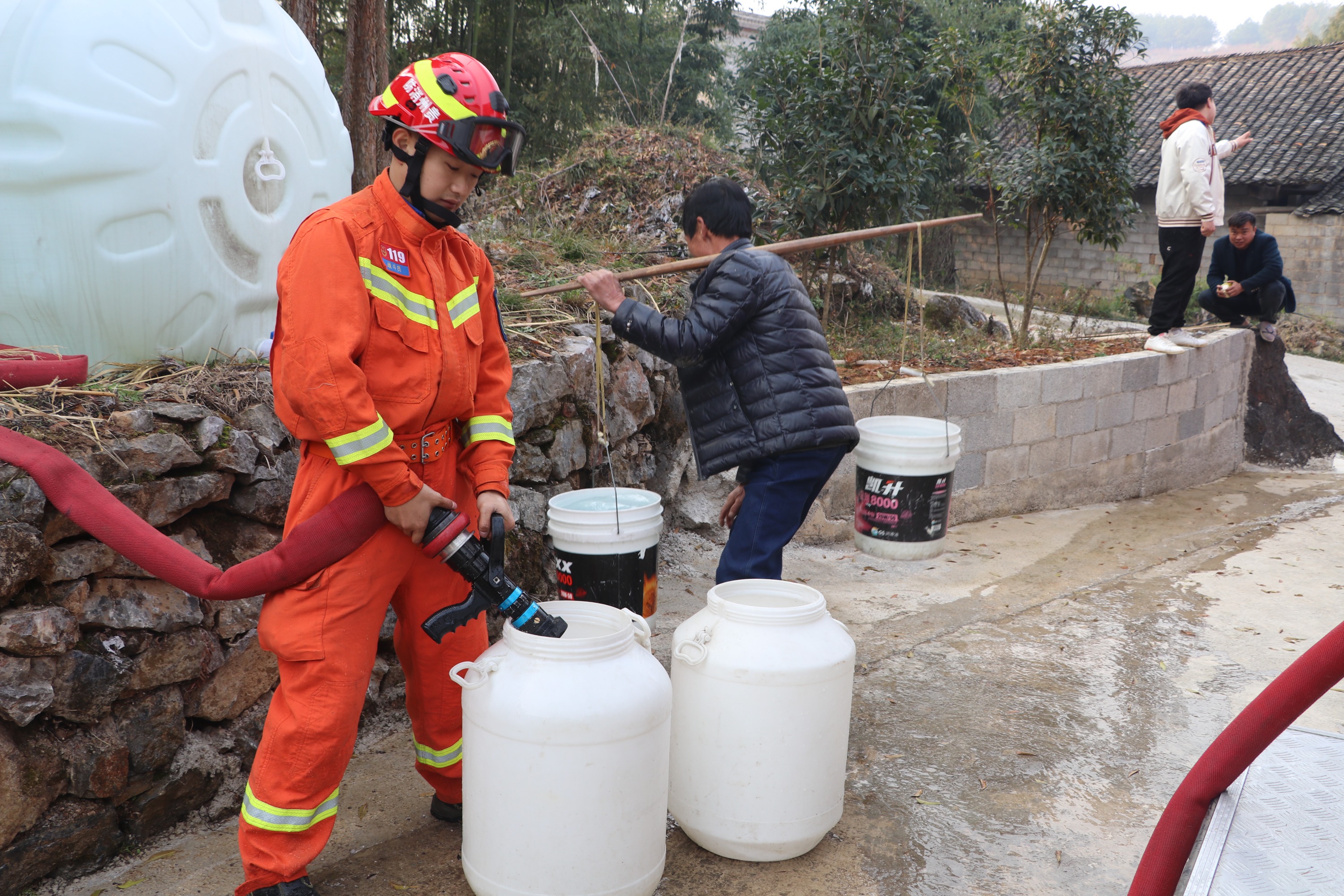 1月25日,贵州大龙经济开发区鲢鱼塘村新屋组,因长期干旱少雨,供水严重不足,200余名村民生活用水困难。大龙消防救援大队立即组织人员前往送水。村民得知消防队送水后已早早在水井旁提桶等候。“乡亲们排好队,一个一个来每家每户都有水”,经过4小时的往返送水,累计送水20余吨,及时解决了村民的用水困难问题。