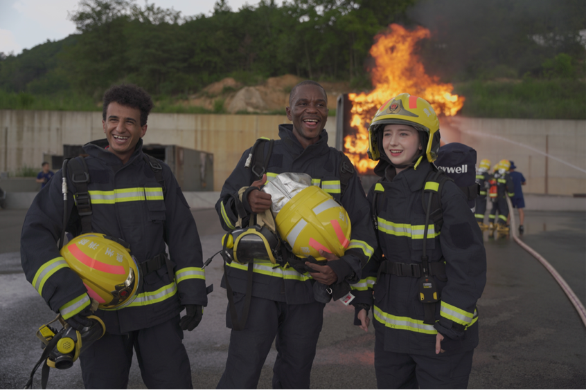 此外,一行人还观摩了模拟化工厂爆炸火灾扑救,突然爆炸的威力震惊了在场众人,这让留学生青年对消防员在奔赴烈火进行救援的工作内容产生最直观最直抵心底的崇敬。