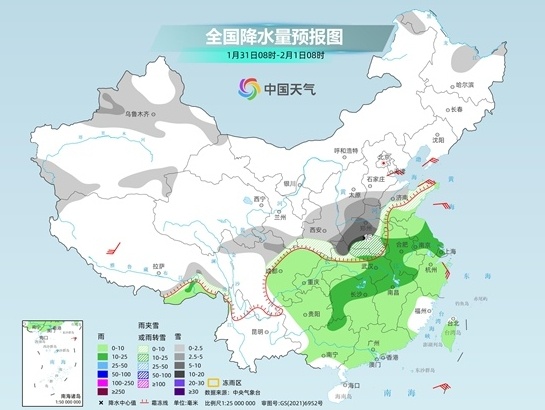 中央气象台预计,1月30日至2月2日,青藏高原东部、西北地区东南部、华北南部、黄淮、江汉西部等地有小到中雪或雨夹雪,其中,陕西南部、河南西部、湖北西部及西藏东部等地的部分地区有大雪,局地暴雪;南方大部有小到中雨,局地大雨。