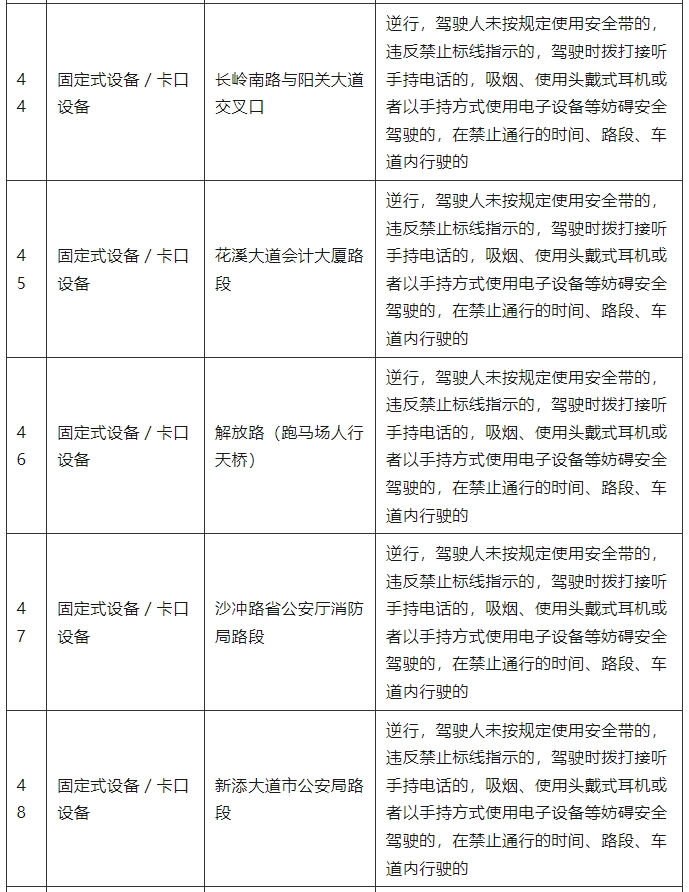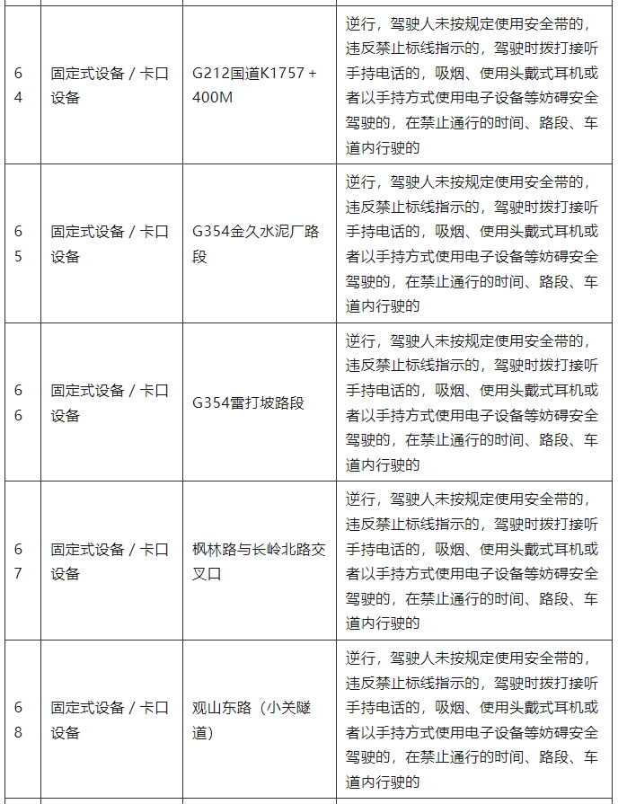 为维护道路交通秩序,预防和减少道路交通事故,保障道路交通有序、安全、畅通,根据《中华人民共和国道路交通安全法》等法律、法规的规定,现将新增执法取证设备予以公示(详见下表)。