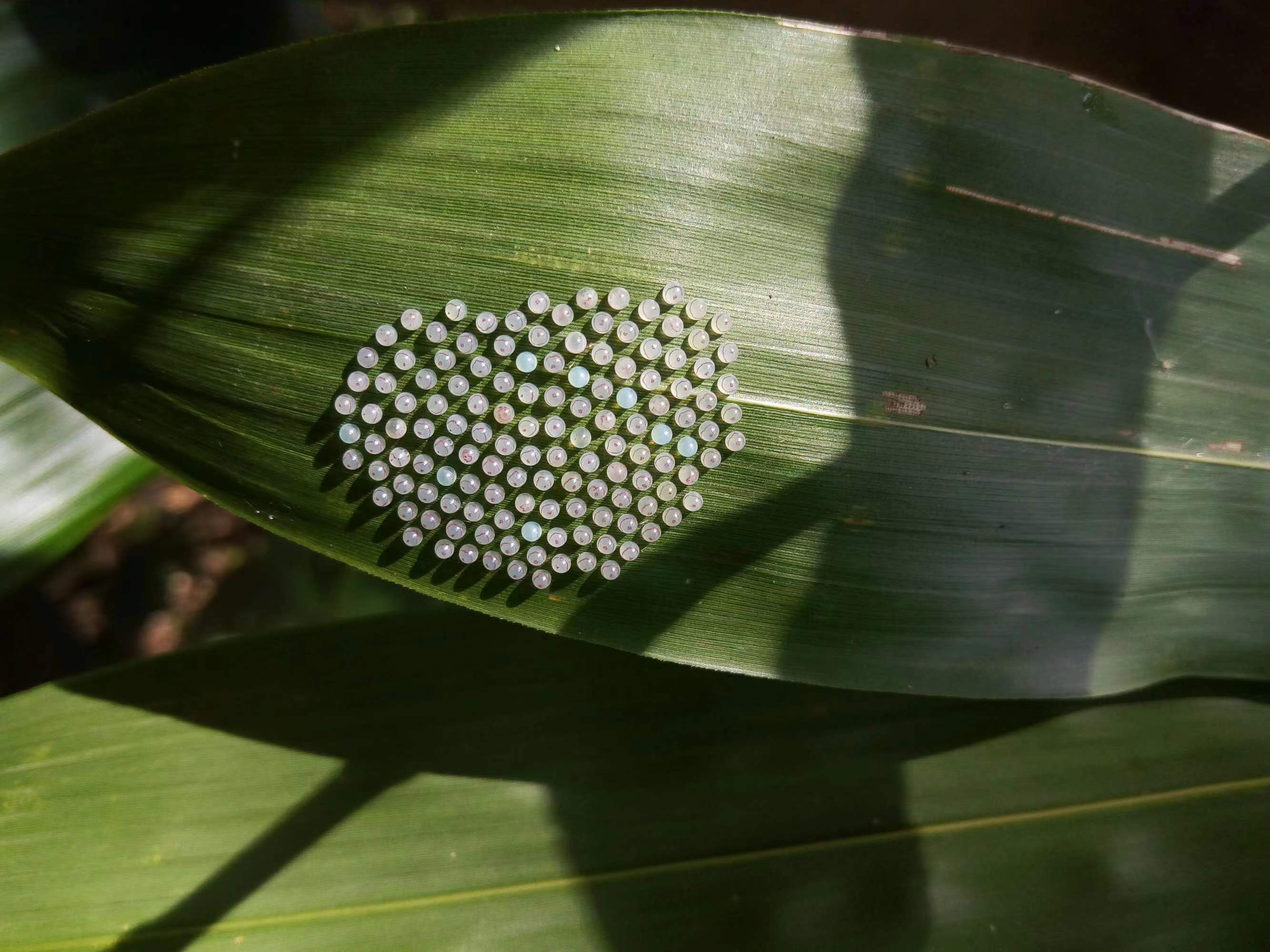 蝴蝶谷中白袖箭环蝶的卵形成了爱心的形状。2020年摄于红河州金平县。 杨镇文 摄