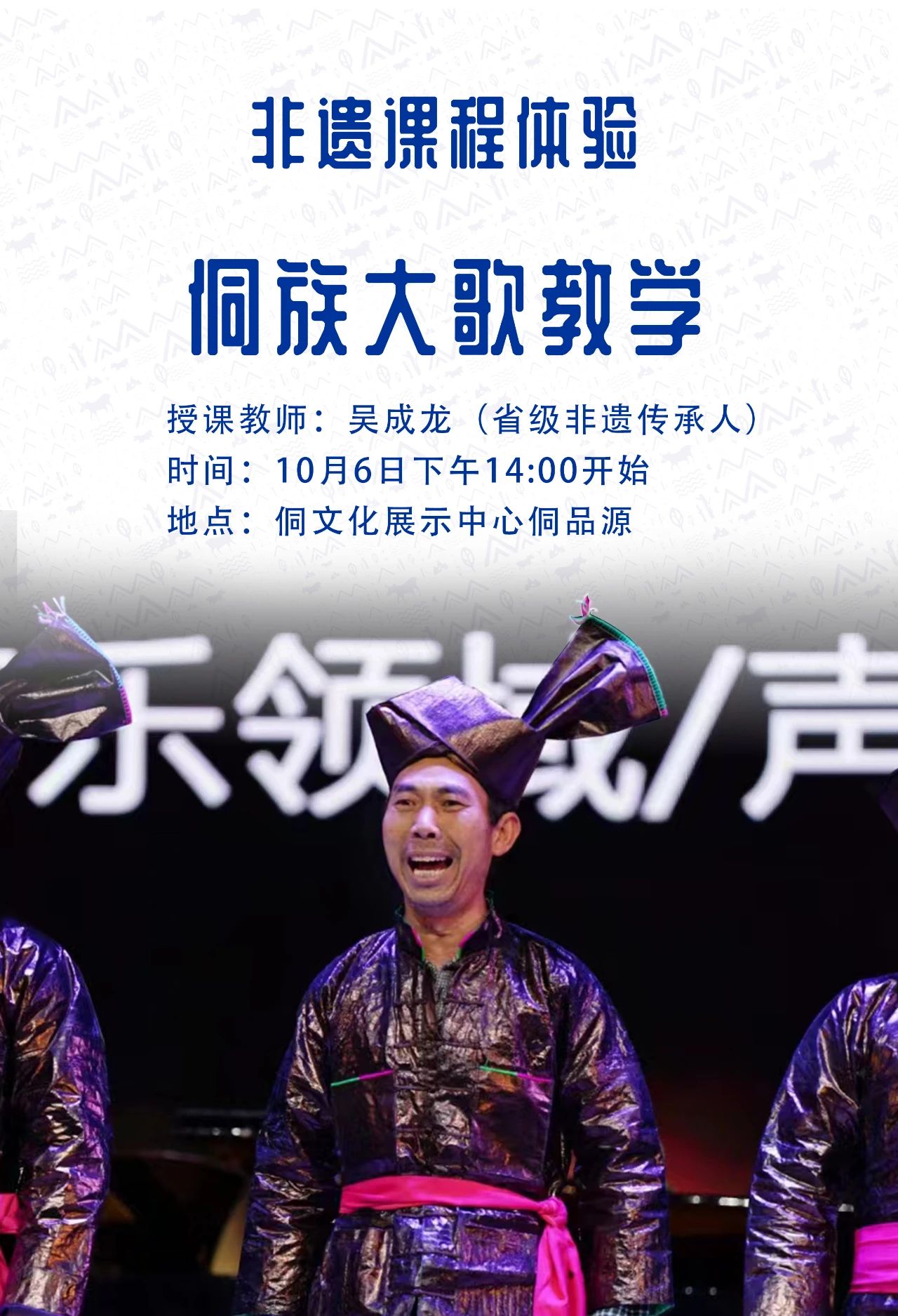 📍挑战内容:学侗歌挑战,要求学会一首简短的侗歌,与下一鼓楼进行对歌。