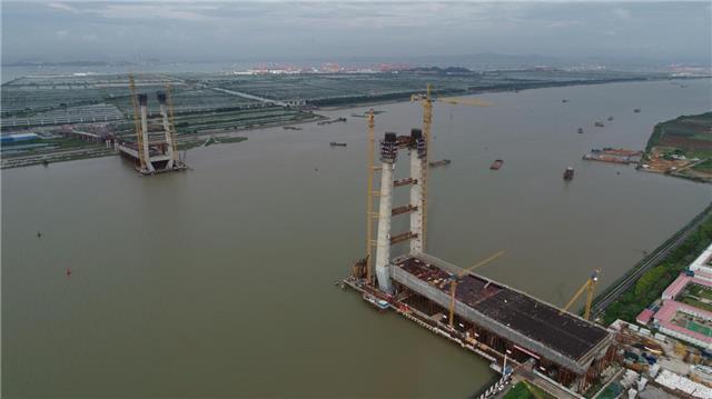 8月14日,由中铁十八局集团承建的粤港澳大湾区重点基础设施项目——位于广州南沙自贸区的红莲大桥进入攻坚阶段,高达180米的主塔开始技术难度最大、工程风险最高的上塔横梁拼装作业,它也是目前我国跨度最大的多功能新结构斜拉桥。