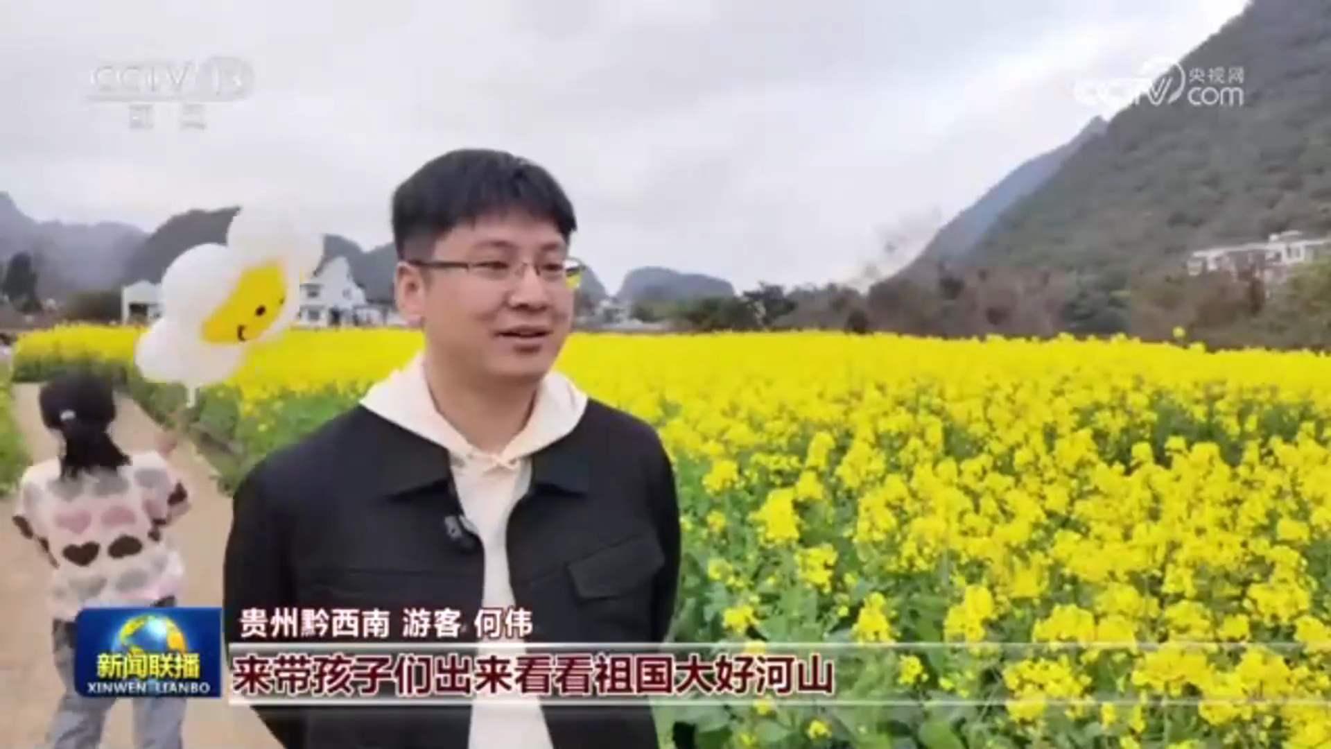贵州黔西南游客何伟:“刚好利用这段时间来带孩子们出来看看祖国大好河山,包括昨天我是去的花江峡谷大桥,看到大桥的跨度、高度,走完之后,就会体会到我们祖国的强大。”