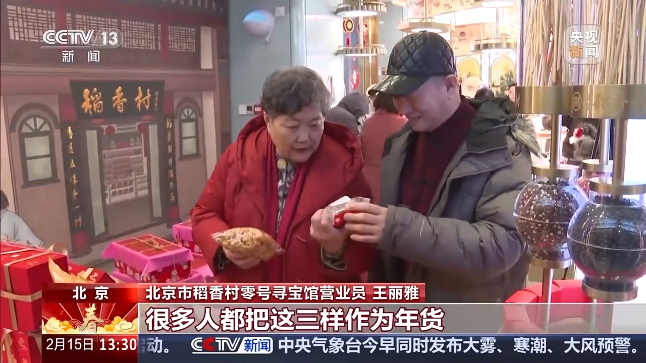 北京市稻香村零号寻宝馆营业员 王丽雅:这款糕点已经卖了很多年了,是很多北京人童年的记忆和味道,过年过节很多人都把这三样作为年货。