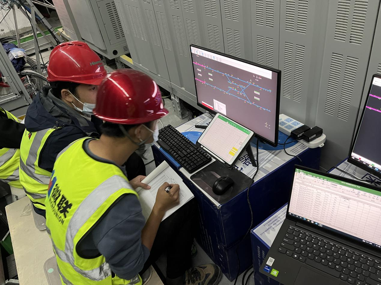 贵阳轨道交通三号线一期工程全线设有联锁集中站8座,包括段场在内共计147组道岔、350架信号机、773条进路。为确保道岔、信号机、进路之间能建立起正确的相互制约的联锁关系,为后期的列车运行保驾护航,调试期间,贵阳轨道交通三号线一期工程建设管理有限公司及各参建单位制定攻坚计划,有序组织推进信号系统轨旁定标、线缆敷设、设备安装配线、联锁调试等工作落地,最终按照计划达成全线联锁取证节点目标。