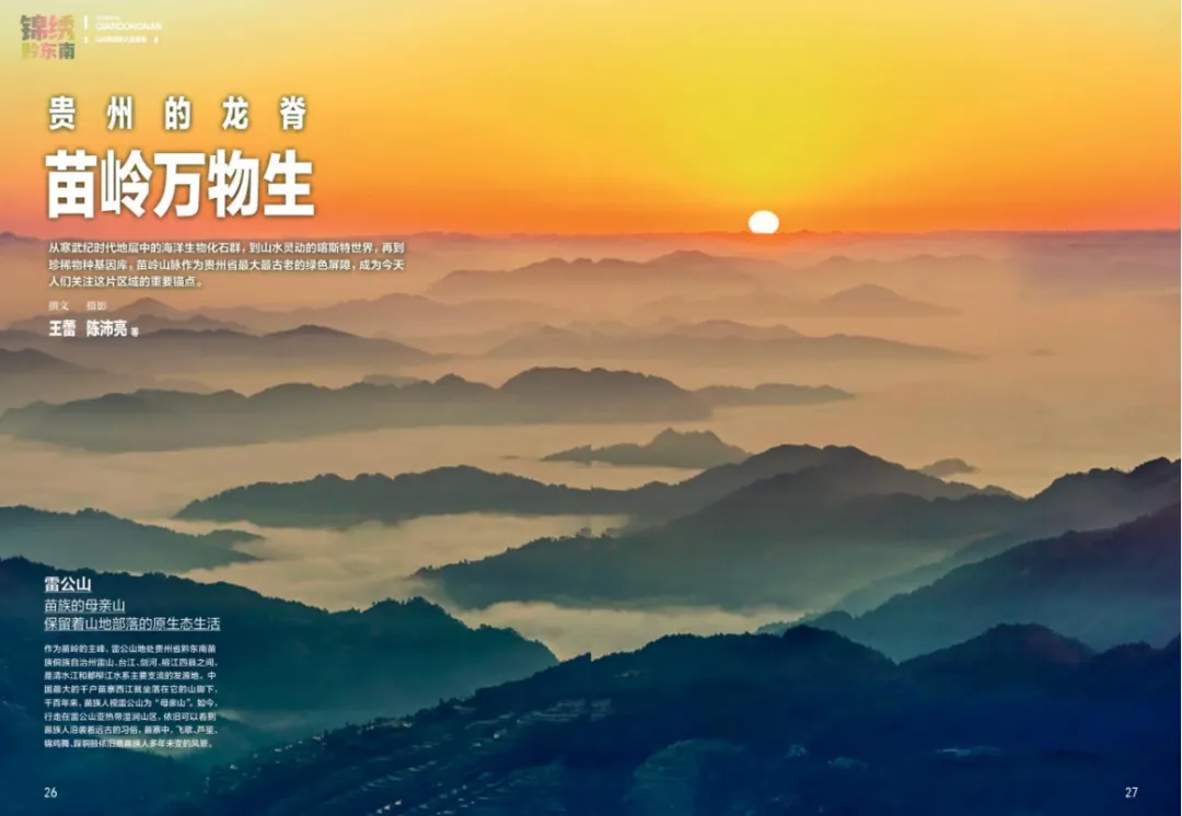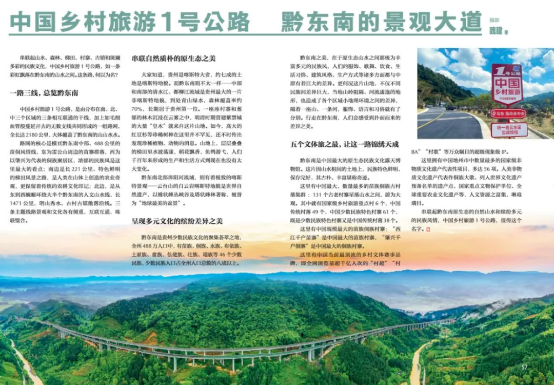 《中国国家地理 · 黔东南增刊》日前正式发行,为地理爱好者、旅游爱好者以及关注黔东南州自然与人文景观的广大读者带来了新的阅读盛宴。《中国国家地理》作为中国地理类杂志的佼佼者,一直致力于展现中国丰富的自然与人文景观,传播地理知识,弘扬科学精神。《中国国家地理》增刊是该杂志为了深入探讨某一特定地区或主题而推出的特别版。此次《中国国家地理 · 黔东南增刊》分为“锦绣山河”“多元共生”“景观大道”“欢乐人间”“绚烂非遗”“酸辣酣畅”六大板块,涵盖黔东南地区的民族文化、历史文化、生态文化、红色文化等多个方面。通过精美的图片、生动的文字以及专业的解读,让读者身临其境地感受黔东南的魅力。