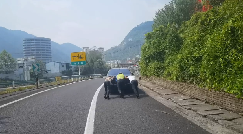 经询问得知,由于车辆老旧,行驶至此处时突然加不上油,驾驶人立即靠边停车并打开双闪灯,刚停下车准备摆放安全警示标志便遇到了民警。民警考虑到此处处于弯道下坡路段,长时间停车等待救援将存在较大安全隐患,加之距离收费站出口较近,民警决定和车上乘客一起将车辆推出收费站,几分钟,在众人合力之下,终于将车辆推出收费站,消除了交通安全隐患。随后,民警帮助驾驶人联系了修理工,面对民警的热心帮助,驾驶人连声感谢。