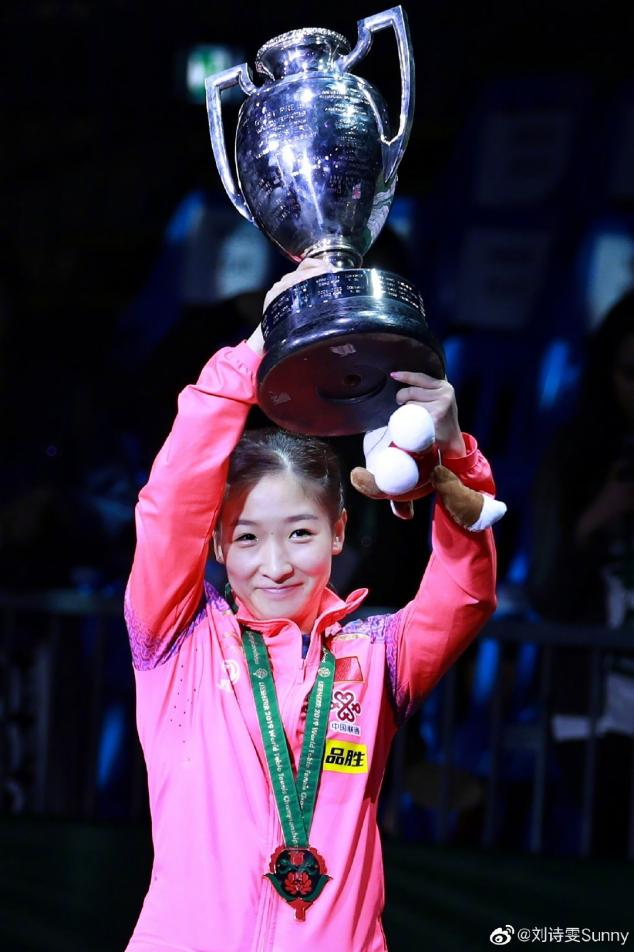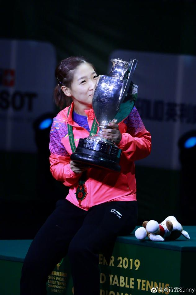 2019年,她首度问鼎世乒赛女单冠军,捧起象征女单最高荣誉的吉·盖斯特杯。
