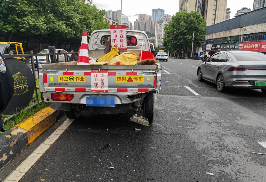 近日,南明区解放路发生了一起因出租车司机疲劳驾驶引发的交通事故,该出租车与停放在隔离带作业的环卫车发生碰撞,由于撞击较强烈,出租车严重受损,出租车乘客和环卫工人受伤。接到报警后,南明交警迅速响应,第一时间赶赴事故现场。