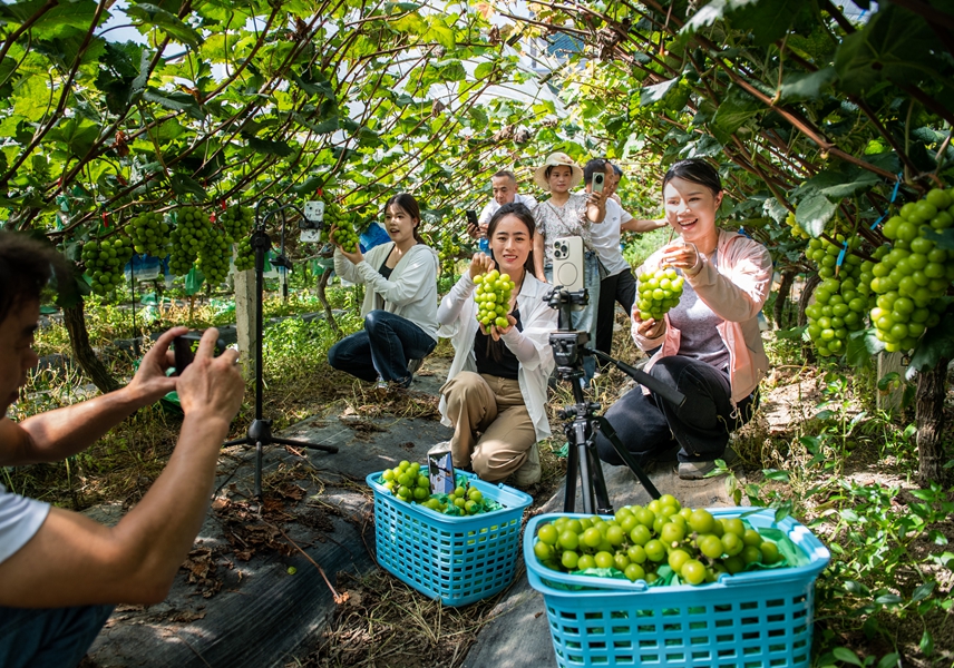 “感谢县自媒体协会组织在我基地开展直播助农活动,活动当天就有近百人来采摘,销售就上万斤。”该县邦洞街道赖洞村葡萄基地负责人张美茂高兴地说。