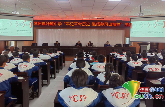研支团成员杨青婷以南昌起义为切入点,以历史为时间轴,对井冈山精神进行了深入浅出的讲解。研支团成员张浩以历史为镜,从历史故事中剖析现实意义。他表示,井冈山精神是共产党人留给我们的宝贵精神财富,大家要传承好红色基因,做有情怀的中学生,共同书写奋斗的青春底色。