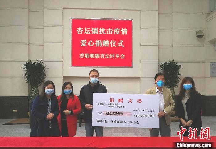 香港顺德杏坛同乡会捐款支持家乡抗疫(资料图) 受访者供图