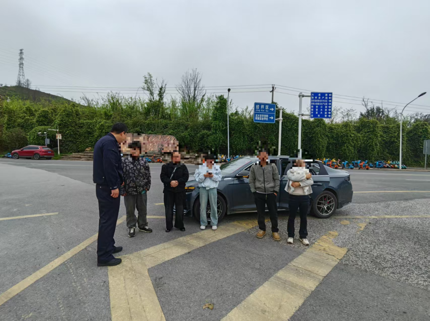 2026年4月7日上午,贵阳市公安局交通管理支队五大队民警在大成路与花溪大道的交叉路口开展执勤执法工作。10时30分许,民警对一辆贵J2***B号小型汽车例行检查,发现核载5人的车内,实载6人(含一名由乘客怀抱的婴儿),已构成超员违法。