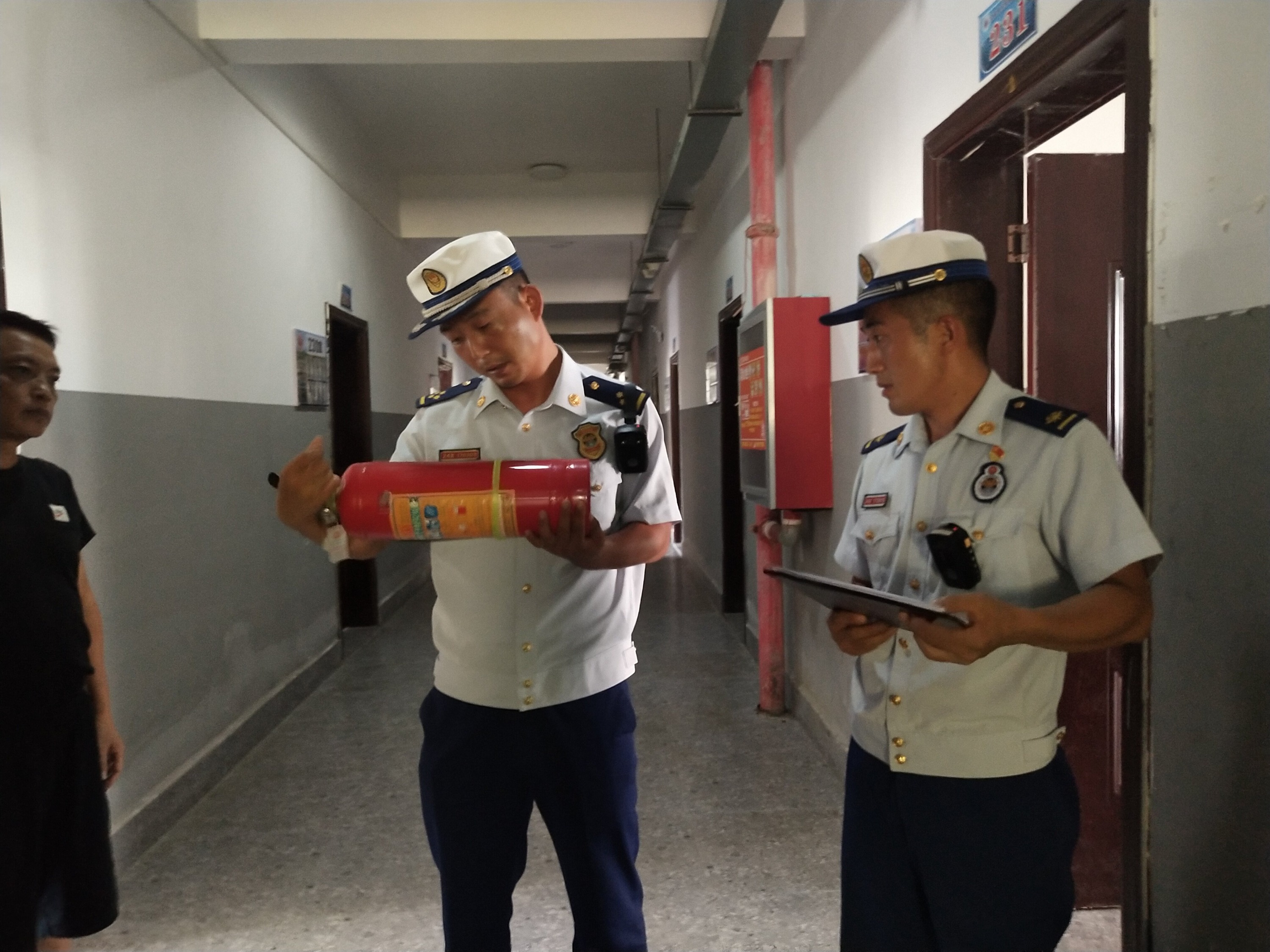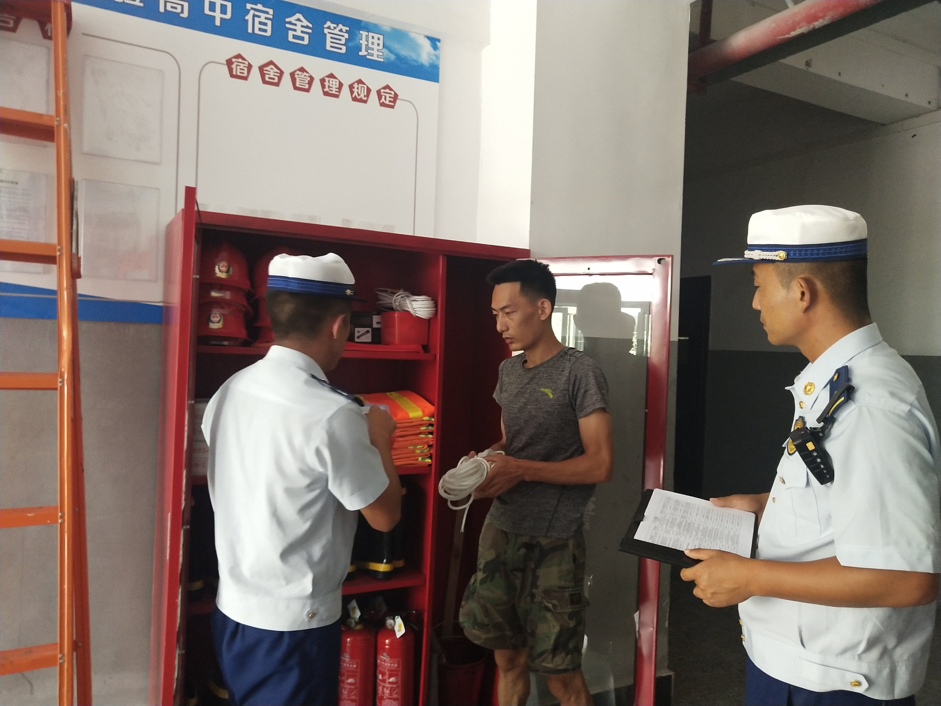 望谟县实验高中出现的教师和学生宿舍部分疏散指示标识、应急照明灯未保持完好有效;部分消火栓出现损坏;值班人员未掌握“四个能力”、电动车堆放在楼道等隐患,防火监督员立即提出整改意见并下发《消防技术服务指导意见书》,责令在期限内完成整改。