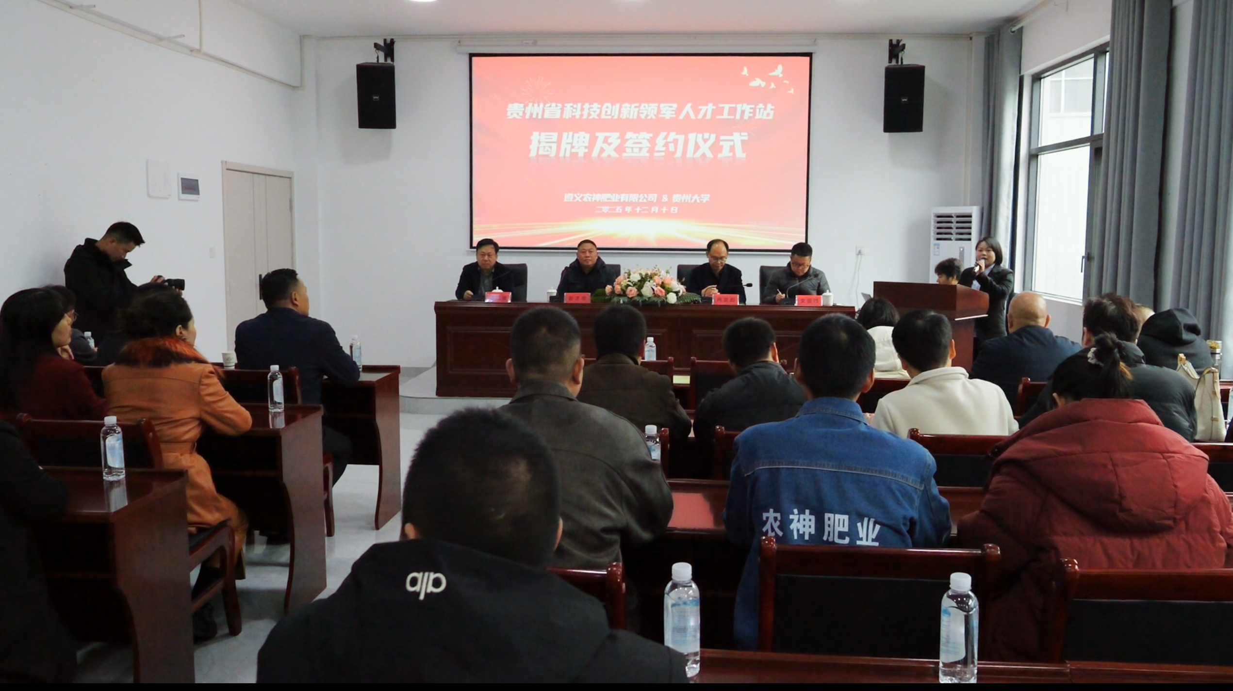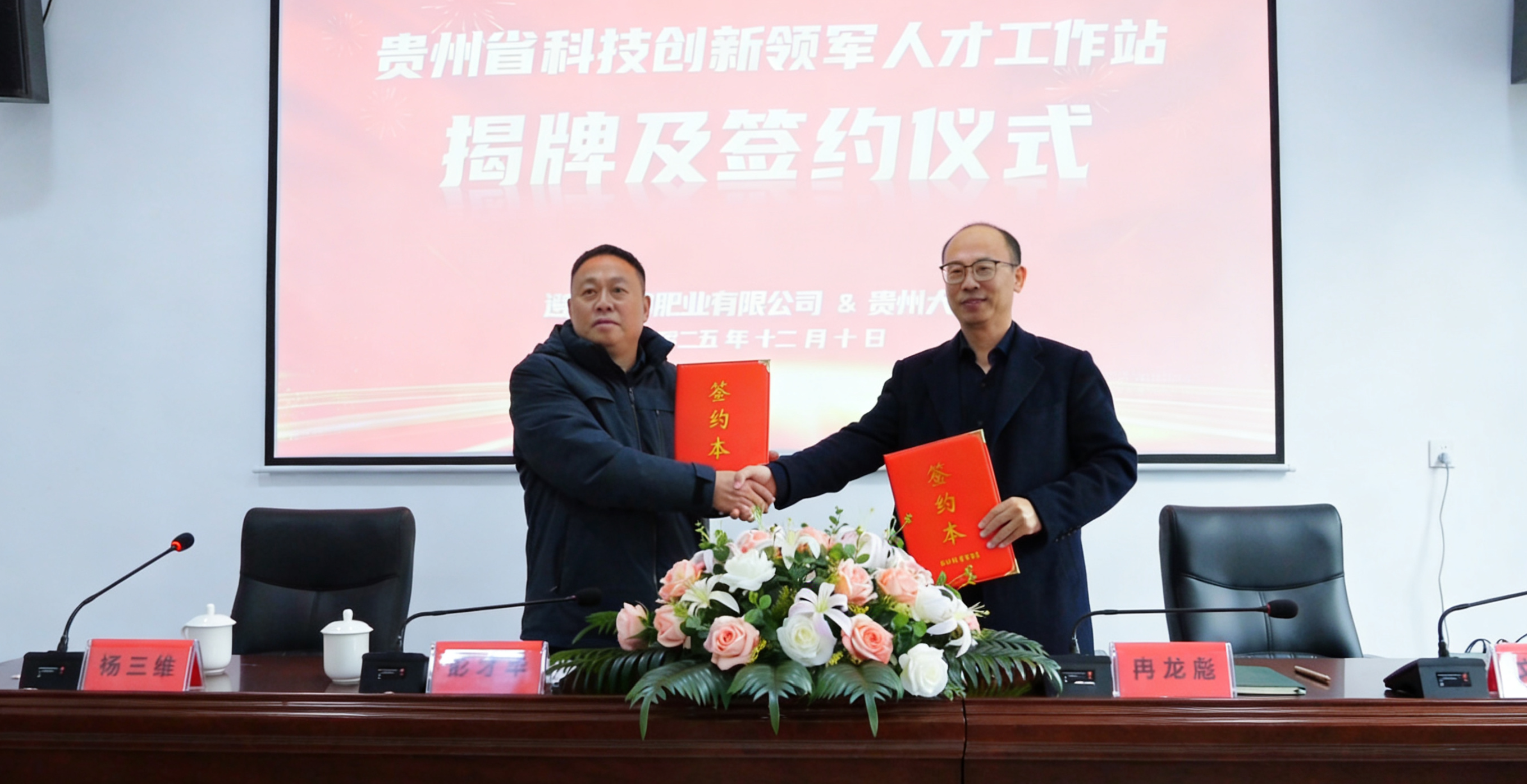 12月10日,“秸秆/粪污资源化利用及功能型有机肥——贵州省科技创新领军人才工作站”揭牌仪式在遵义农神肥业有限公司举行。该工作站由贵州大学与遵义农神肥业有限公司携手共建,标志着贵州省在农业废弃物资源化利用与绿色农业科技研发领域迈入产学研深度融合的新阶段,将为区域农业高质量发展与乡村振兴注入强劲科技动能。
