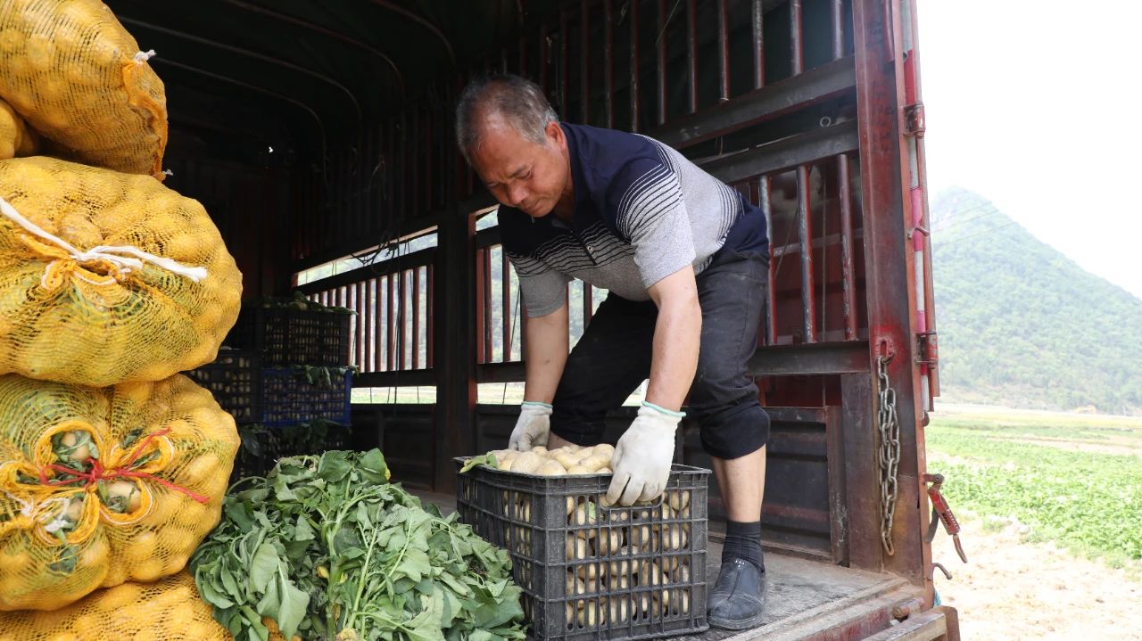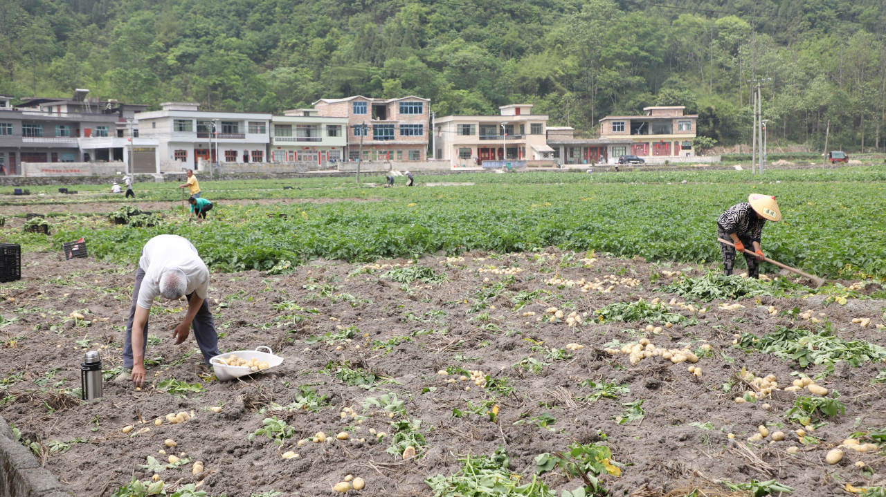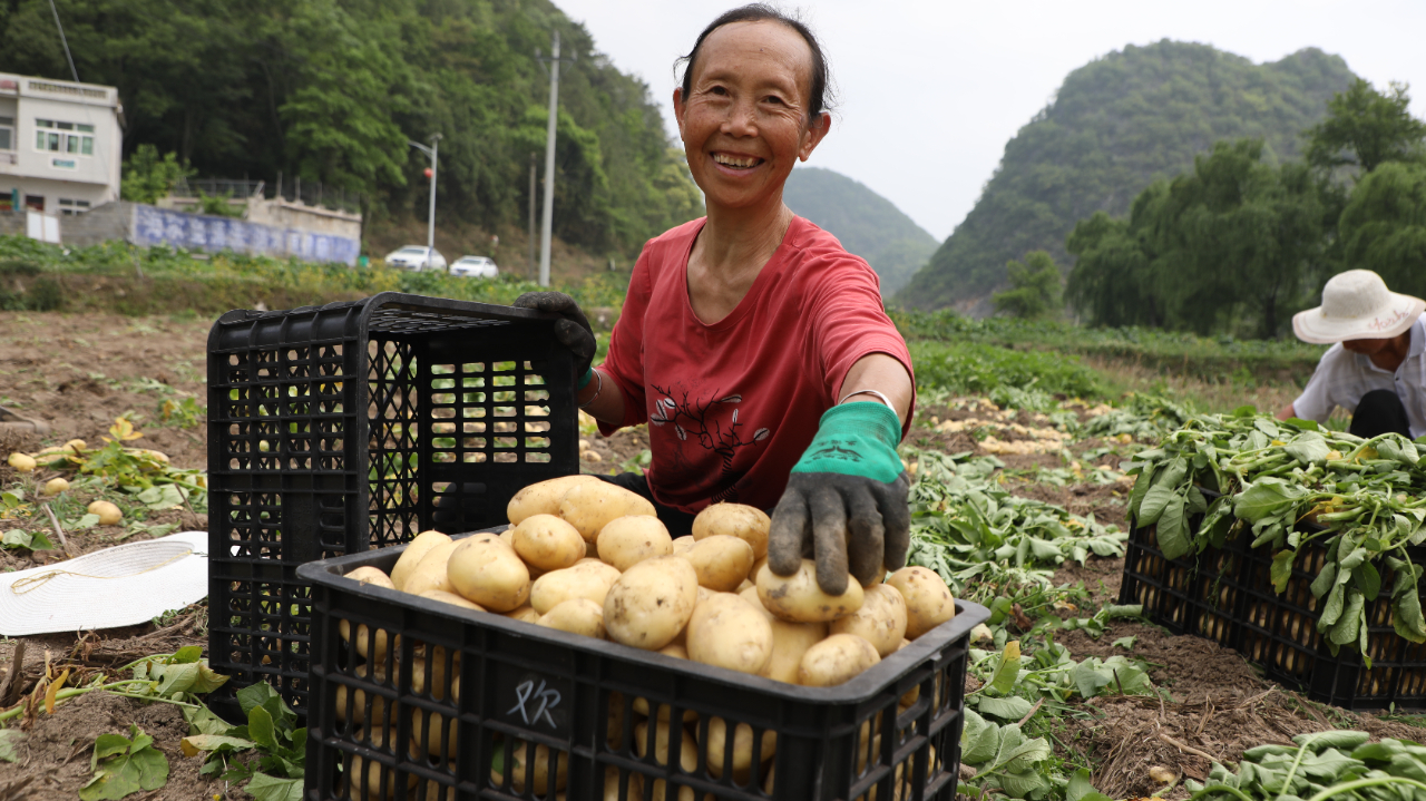 “我家种土豆二十多年了,以前是自己买来栽,现在是政府发,今年种了7亩,一天可以挖得700斤左右,卖得900元左右。”所把村土豆种植户陈开琴掩不住笑意说道。
