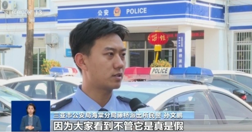 三亚市公安局海棠分局藤桥派出所民警 孙文鹏:从播放量(点击转发量)上还是造成了一定社会影响。因为不管它是真是假,大家看到后心里可能就种下了一颗种子,感觉也会去质疑它,或者是去相信它,都会对社会舆论造成影响。