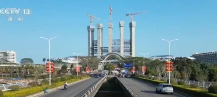 三亚市公安局海棠分局藤桥派出所民警 孙文鹏:图片中的五根柱子是两家企业合资的一个酒店,现在这五根柱子相当于建设了三分之二的进程,酒店目前还没有正式开业。
