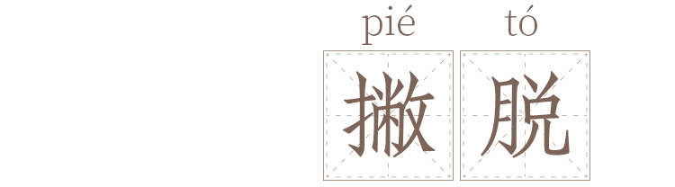 文献中也常见“撇脱”一词。宋代《朱子语类》卷九十四:“持敬颇似费力,不如无欲撇脱。”明代周履靖《锦笺记·代选》净白:“有心慷慨,撇脱了些。”